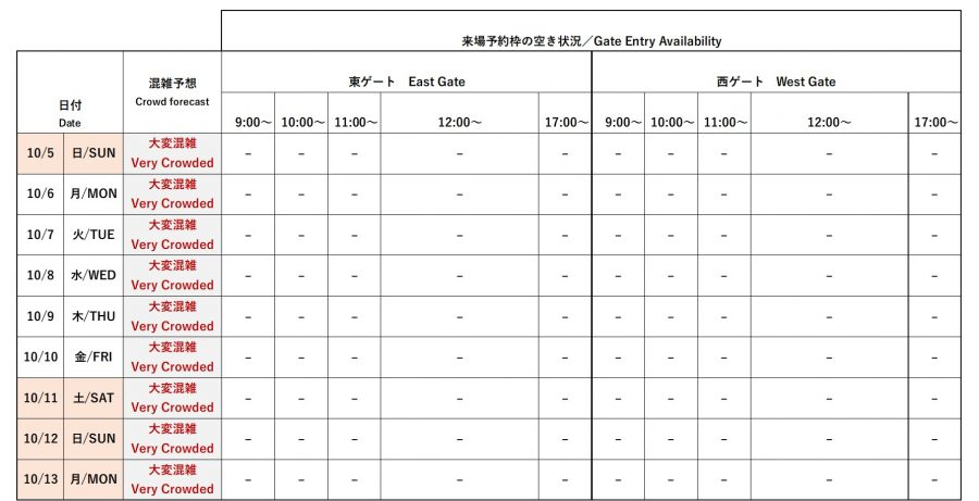 既に閉幕の2025年10月13日までの混雑予想が発信されています。