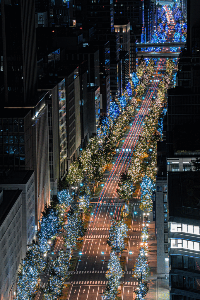 冬ではないですが御堂筋がイルミネーションされており美しいです。