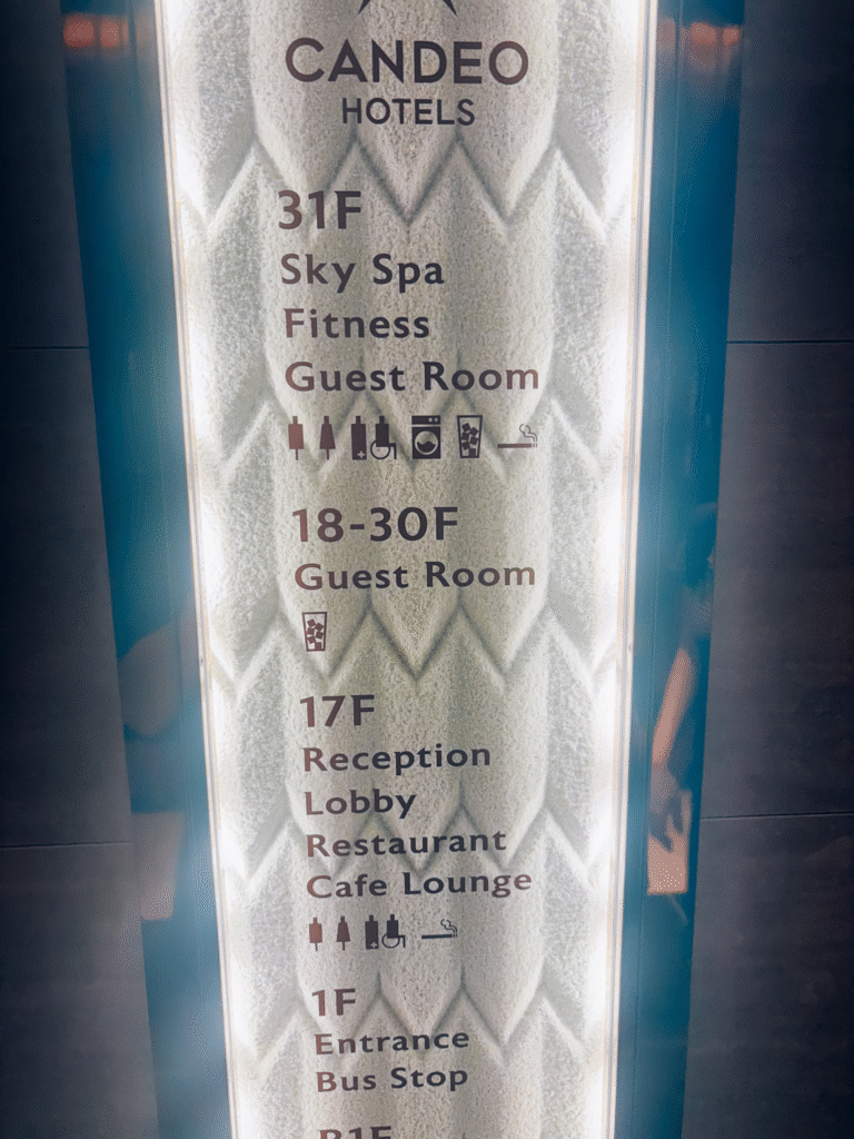 1階のエレベーターホールはいかにもカンデオホテルという感じです