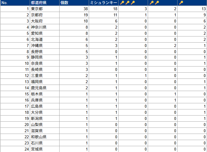 さらに上記のうち18軒がミシュランキー獲得ホテルとなっており、