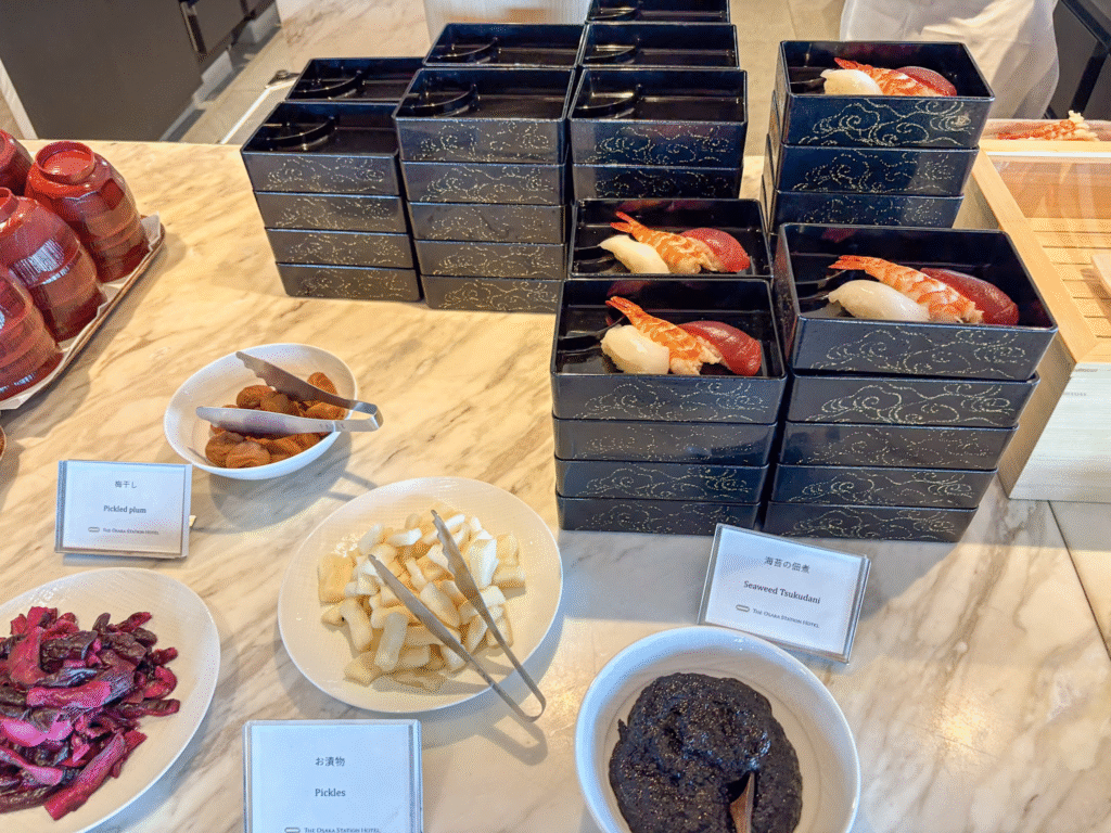 なんと大阪ステーションホテルの朝食ビュッフェでは朝から握り寿司も食べ放題です。