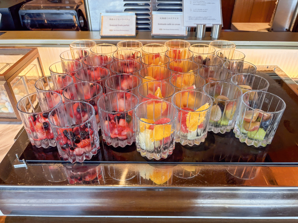 フルーツやヨーグルトはもちろん、パティシエが作ったケーキやムースも並び、まるでカフェのような体験ができます。