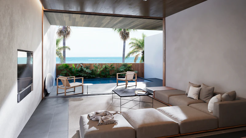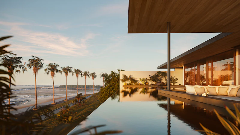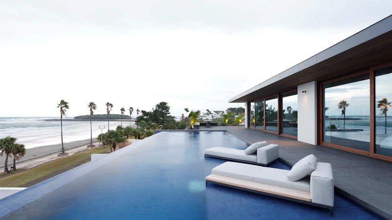 海に向かって開かれたインフィニティプールやテラスがあり、