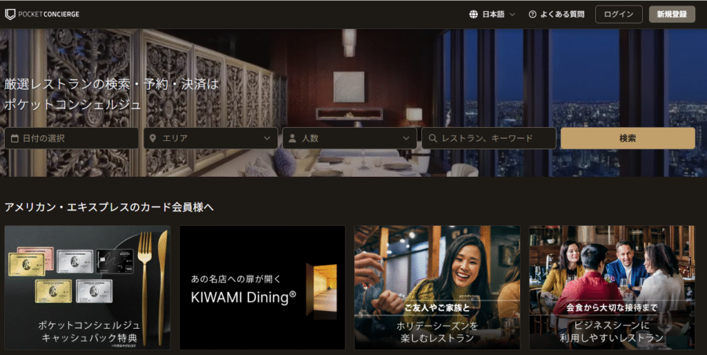 ポケットコンシェルジュでは運営母体であるアメリカン・エキスプレスのカード会員を対象とした