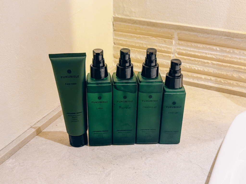 バスアメニティには福美水の「FUKUBISUI matcha」が使用されています。