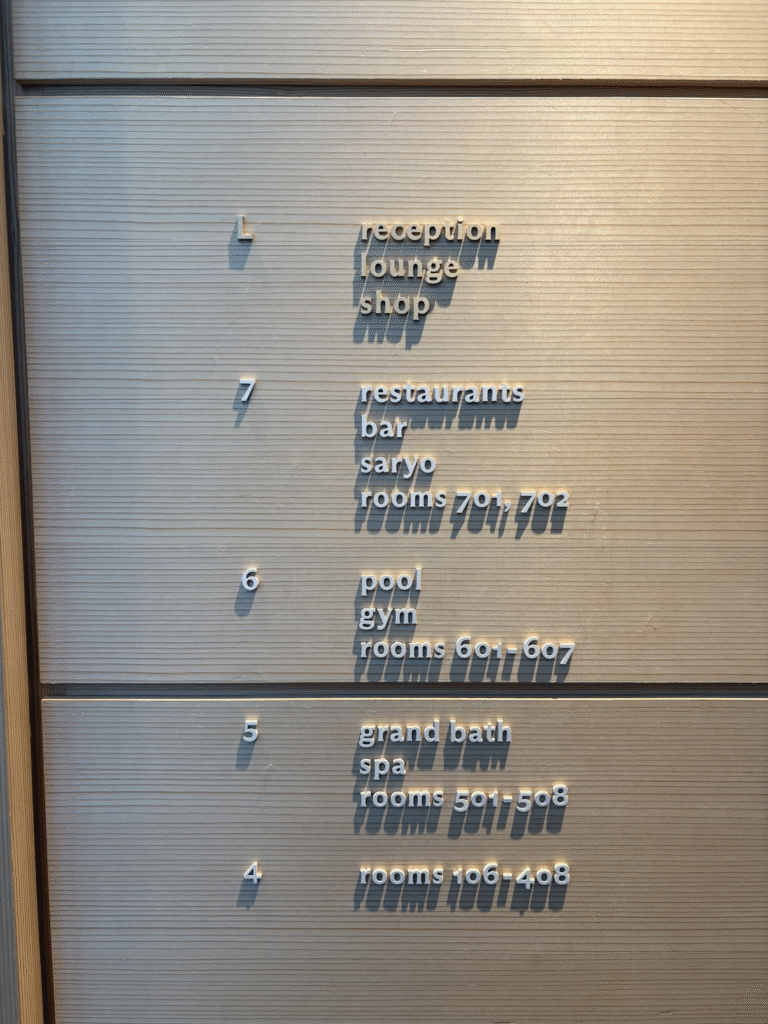 レストランやバーは7階、プールやジムは6階、大浴場は5階にあるようです。