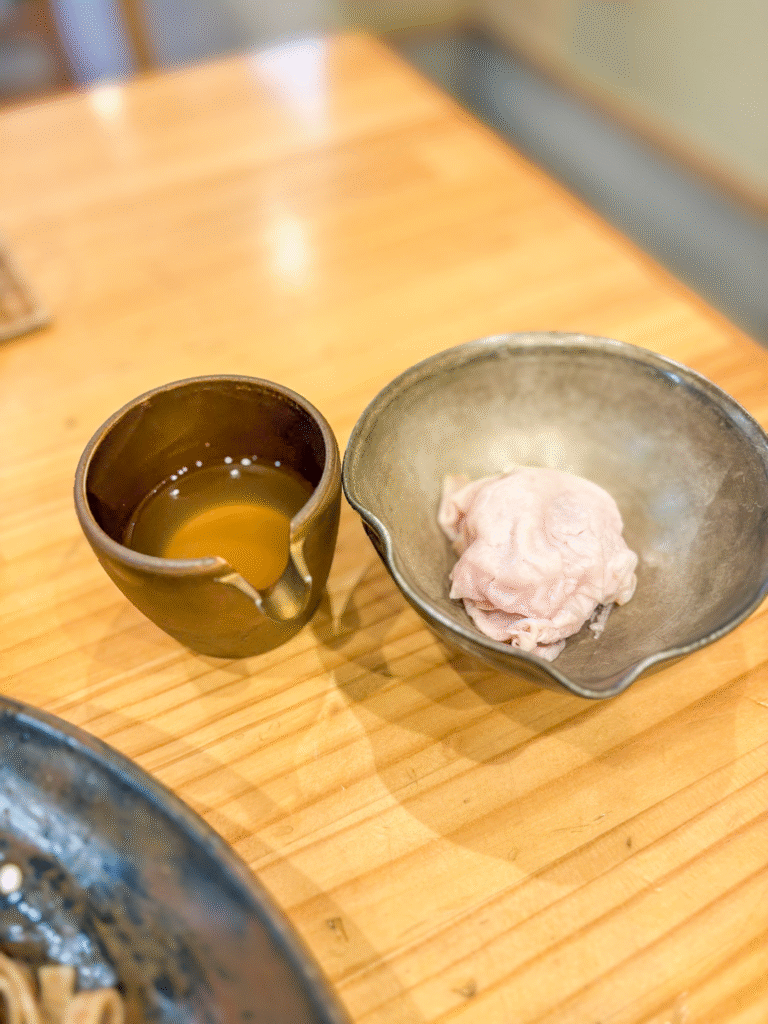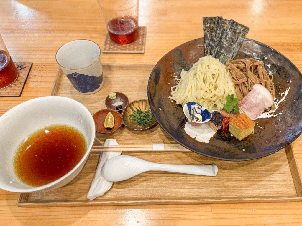 めんつゆのような節系のつけ汁が用意されているのに驚きました。
