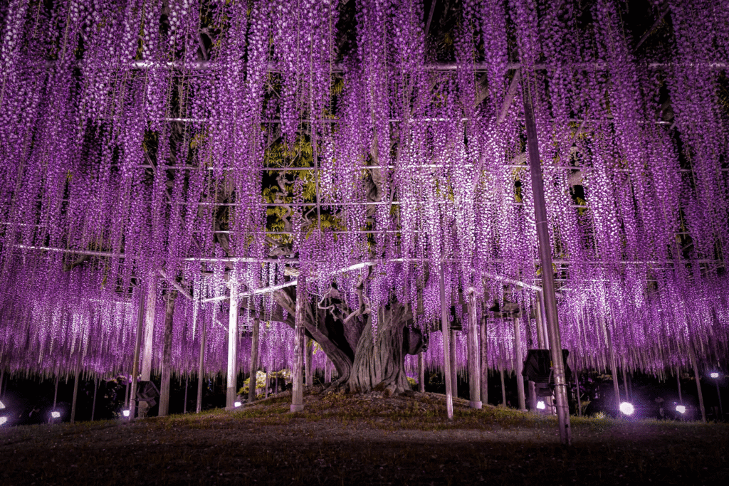 CNN「世界の夢の旅行地10選」に選ばれ、特に4月中旬〜5月中旬の藤の時期が有名です。