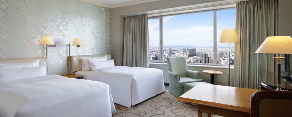 中之島の夜景を望む高層階の客室に上がれると、大阪の都市景観を楽しみながら滞在できます。ビジネス出張でも、こうした小さな体験の違いが疲れの回復度に差をつけます。