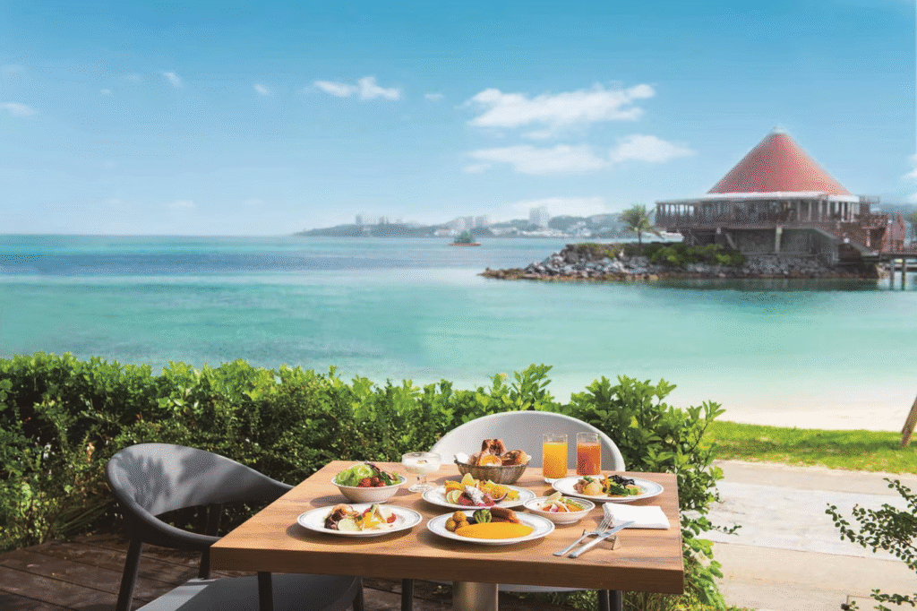 夕方のカクテルアワーでは、沖縄の夕焼けを眺めながら一杯楽しめます。2名分の朝食価値は約8,000〜12,000円相当で、複数泊になるほど節約効果が積み重なります。