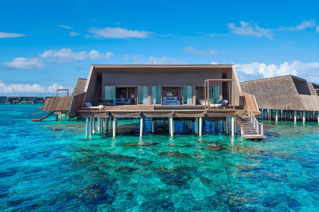 SNAスイートナイトアワードを持っている場合は、オーバーウォータースイート(200㎡超・インフィニティプール付き)への確約アップグレードが可能です。水上ヴィラのデッキから直接インド洋に飛び込める体験は、世界中のホテルを探しても類を見ない非日常です。