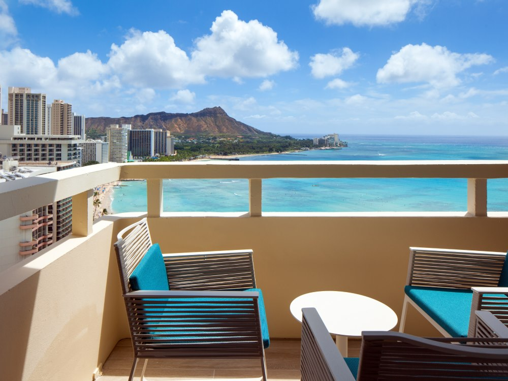 シェラトン ワイキキの客室は全体的に広めで、スタンダードでも約37㎡あります。オーシャンビュールームは約42㎡で、大きめのバルコニーからワイキキビーチを望める造りになっています。